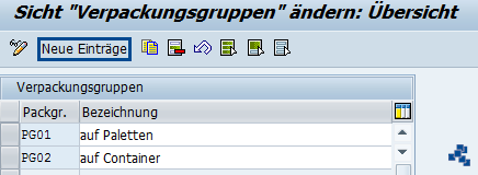 SAP EWM Verpackungsgruppe definieren_neuer Eintrag