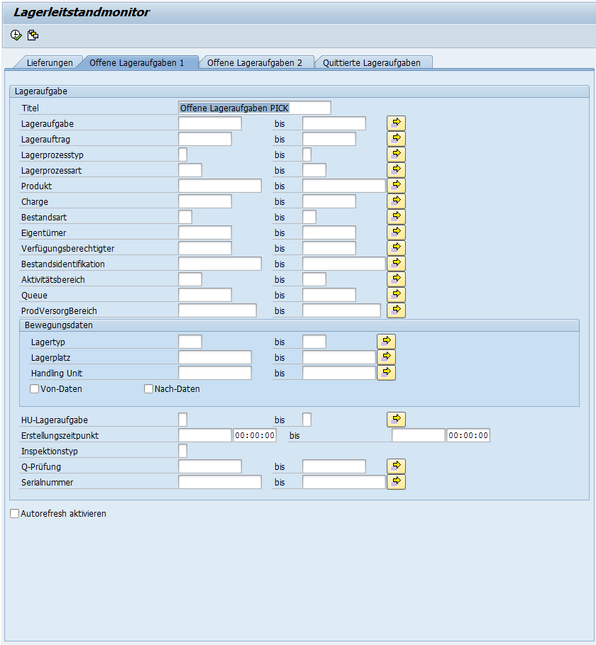 SAP EWM Lagerleitstand Bereich offene Lageraufgaben Pick