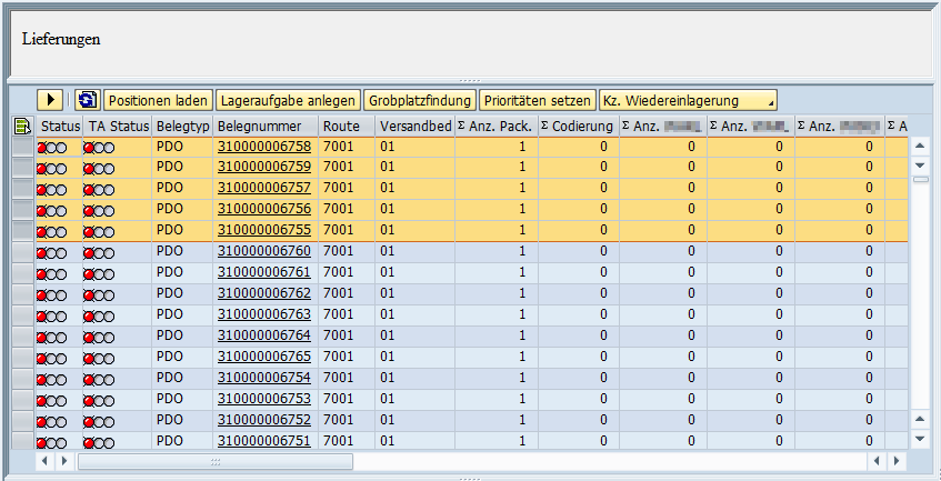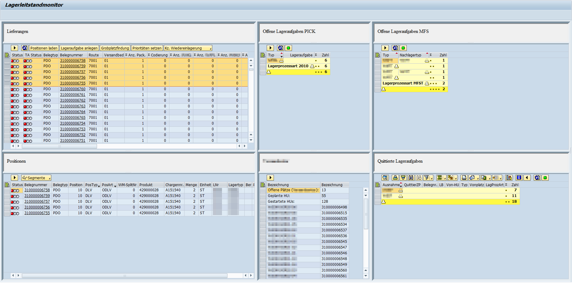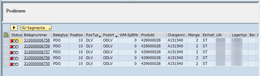 SAP EWM Lagerleitstand Bereich Positionen